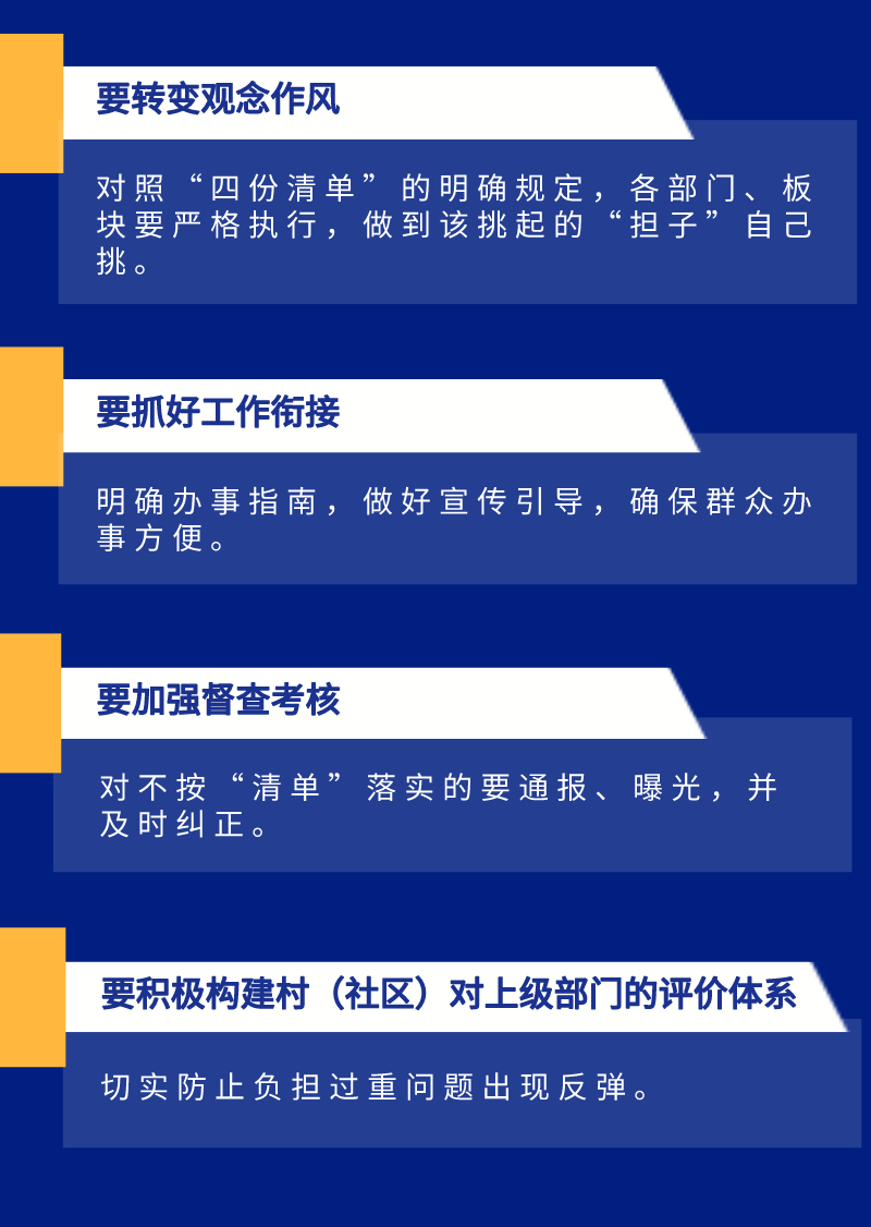 在讨论研究《关于实施〈村(居)民委员会盖章证明事项清单〉〈村(居)民委员会依法履行职责事项清单〉〈村(居)民委员会依法协助工作事项清单〉和〈不应由基层群众性自治组织出具证明事项清单(第一批)〉的通知》后,会议强调,