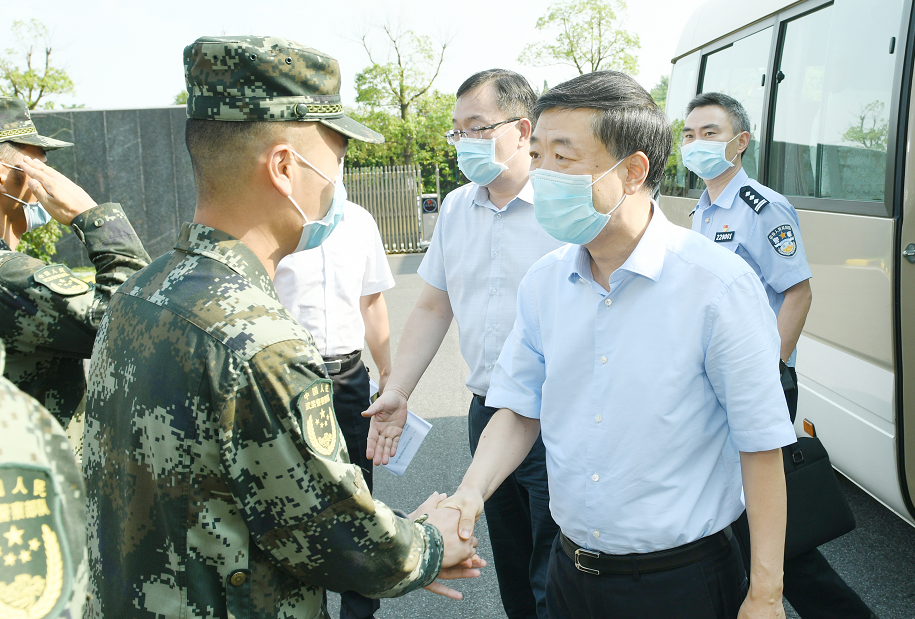 在武警江阴中队,许峰详细了解了该中队各项工作取得的成效。近年来,武警江阴中队圆满完成了各项值勤、抢险救灾任务,为江阴人民织密了生命财产安全防护网,去年,该中队被省武警总队表彰为“基层先进党组织”。