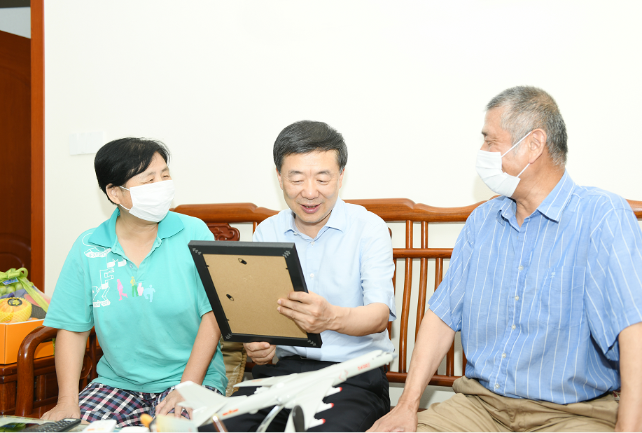 来到优秀现役军人高墨海家中,许峰与高墨海父母高杰麟、向桂萍亲切交谈,详细询问他们的身体状况和家庭状况。高墨海2003年入伍,现服役于空军某部,从军18年以来,先后荣立二等功1次、三等功1次、嘉奖5次,并获得“优秀共产党员”、“十佳空勤人员”等多项荣誉。