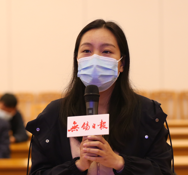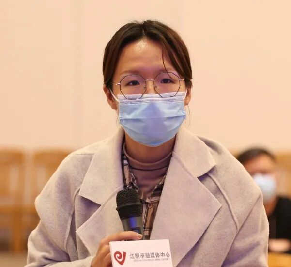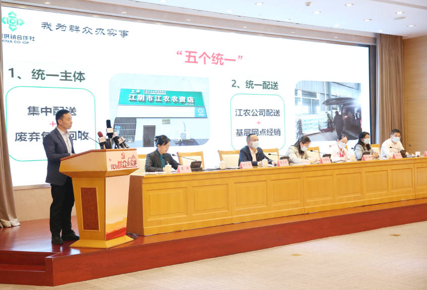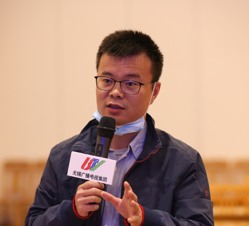 ▲光明日报、江苏广电、扬子晚报、无锡日报、无锡广电、江南晚报和江阴市融媒体中心等市内外媒体记者就基层农资网点经营管理、“网上职工学校”发展模式等方面进行现场提问。