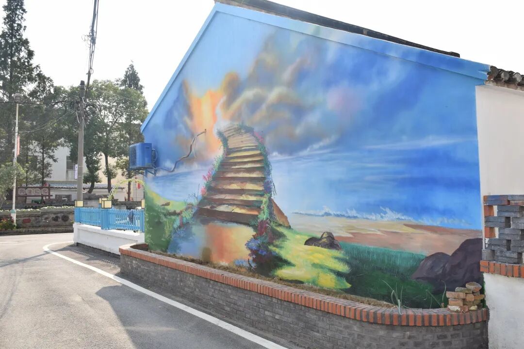 新时代下,璜土村的“省钱模式”有了创新思路,通过互惠互利的方式谋求新发展。璜土村党委宣传委员徐勐介绍:“这两年,璜土村胡子小镇吸引了众多外来艺术家。我们将拆迁闲置的房屋免费租给他们用来进行室内艺术创作,他们也欣然答应每年为村里完成500平方米的墙绘。在美化环境的同时,也提高了村庄文化辨识度。”