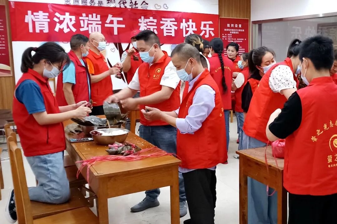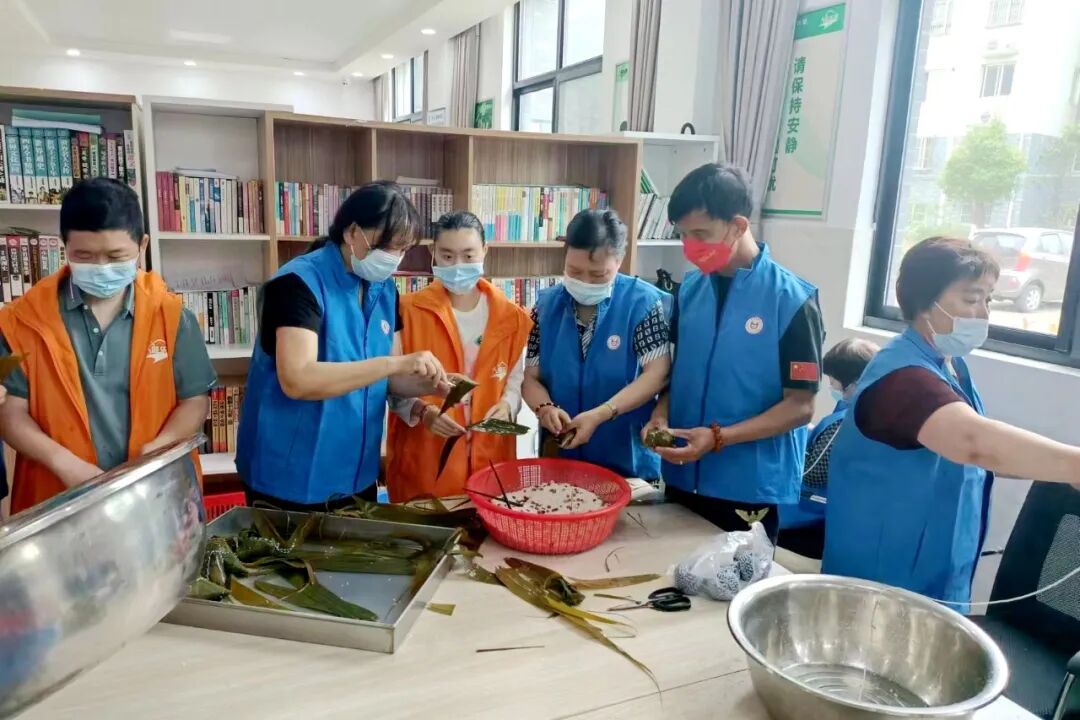 6月1日上午,顾山镇金桃社区新时代文明实践站联合赤岸村新时代文明实践站在红豆村残疾人之家开展端午节特色志愿活动。“疏疏数点黄梅雨,殊方又逢重五”。活动中,志愿者们为残疾人包粽子,为他们送去了祝福与关怀。