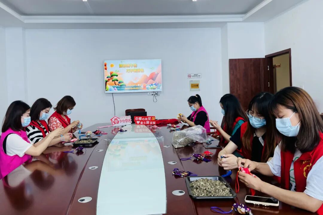 6月2日,祝塘镇文林村开展了“巧做香囊迎端午”活动,志愿者们相聚一堂,用香气怡人的香囊迎接端午节的到来。桌子上花布、彩绳、香料、挂饰配件等准备齐全,大家选好材料后便开始装香料、系丝线,共同切磋。