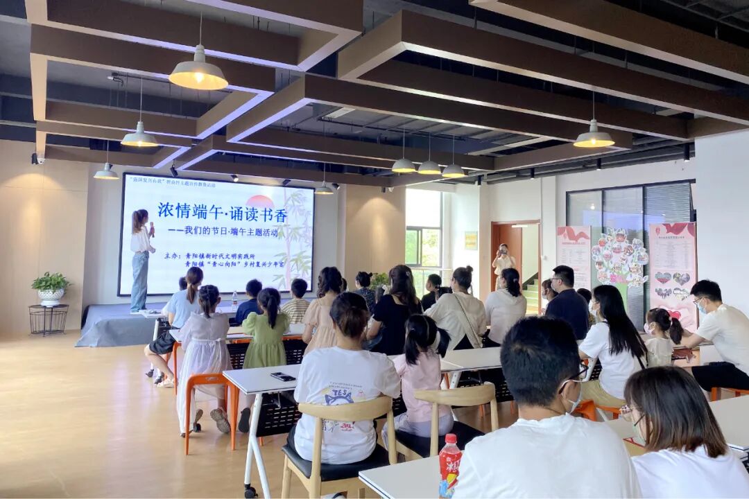 青阳镇在“青心向阳”乡村复兴少年宫开展了“浓情端午 粽享安康”主题活动。通过诵读书香,让大家了解屈原的故事,在诗词中加深对传统文化的了解,激发爱国情怀。