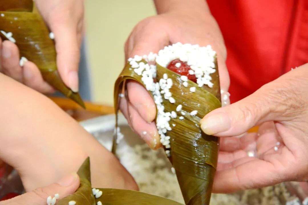 大家还一起动手包粽子,“老师傅”们现场教学,“小徒弟”认真学习,欢声笑语,其乐融融。片片粽叶散发着清香,粒粒糯米寄托着温情,不一会儿,一个个玲珑可爱、各具特色的粽子就呈现在大家眼前。