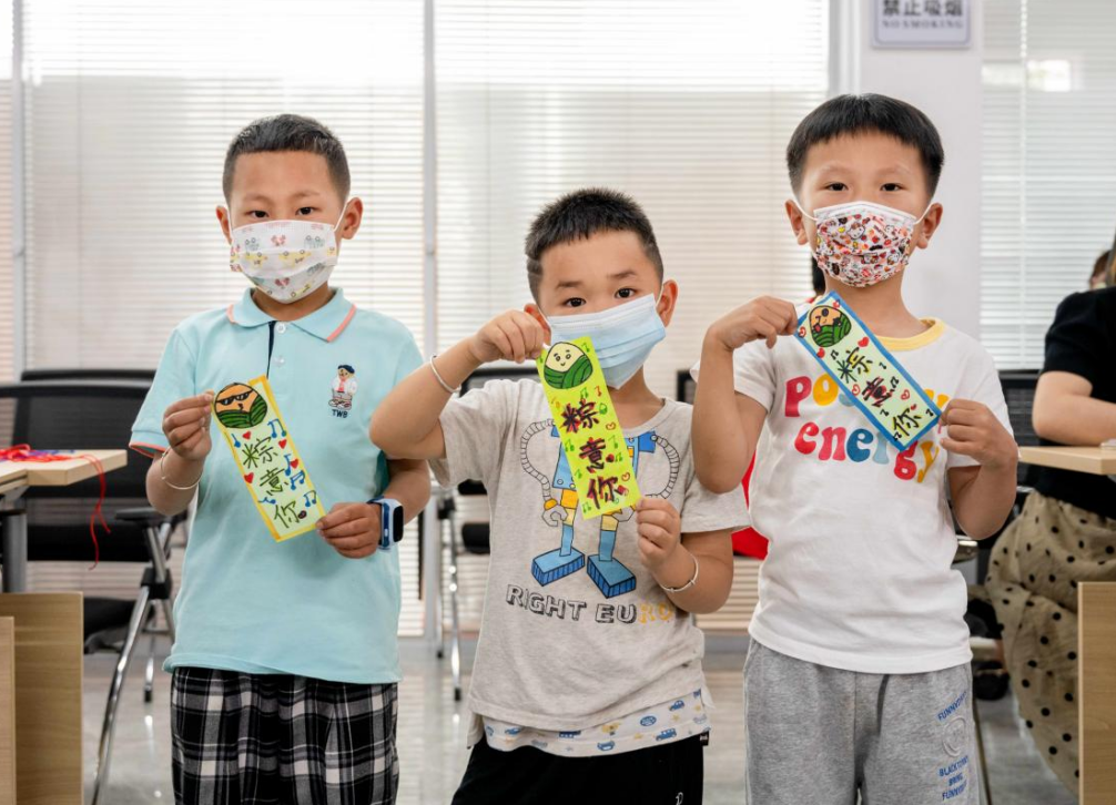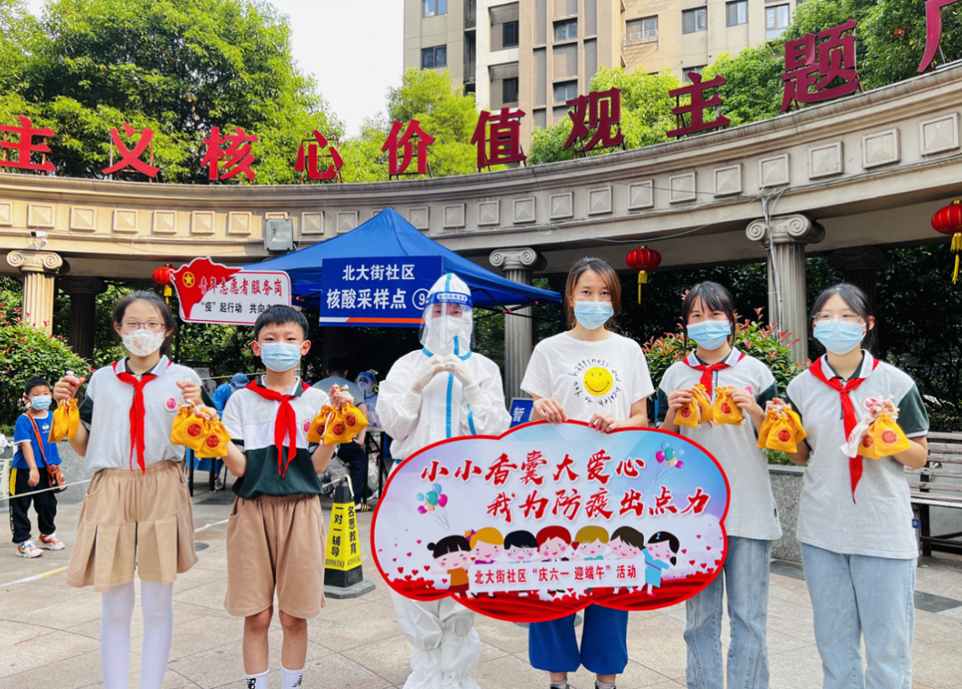 澄江街道北大街社区开展了“庆六一 迎端午”活动,老师带领孩子们制作香囊,并把自制的防疫香囊分别送到坚守在各个核酸检测点的“大白”手中,致敬一线抗疫人员。