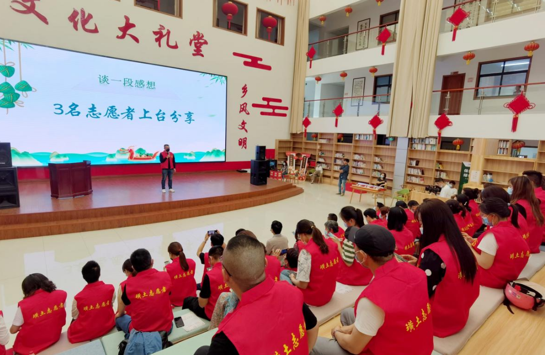 现场大家齐唱歌曲《阳光总在风雨后》,观看璜土抗疫视频,优秀志愿者们分享了他们的抗疫故事,还向现场的抗疫“战士”们送上一份吉祥,致敬最美逆行者冲锋在前、无私奉献,坚守抗疫第一线的勇气和情怀,重温“端午节”蕴含的爱国情怀。