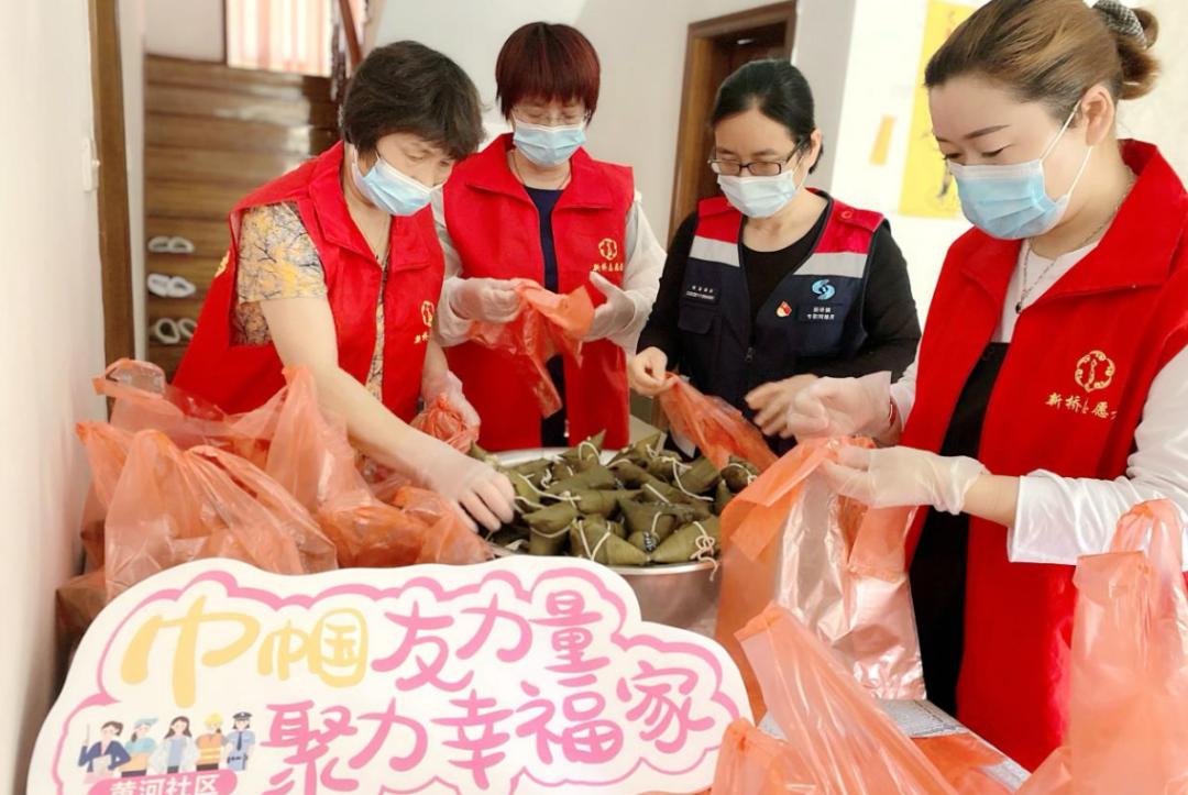 新桥镇黄河社区开展了“疫情不减邻里情 粽叶飘香过端午”主题活动。活动中,社区黄河二村友邻楼道好乡邻们自发筹资购买了糯米、红豆、粽叶等原材料,再由楼道好阿姨们亲手制作并打包好。