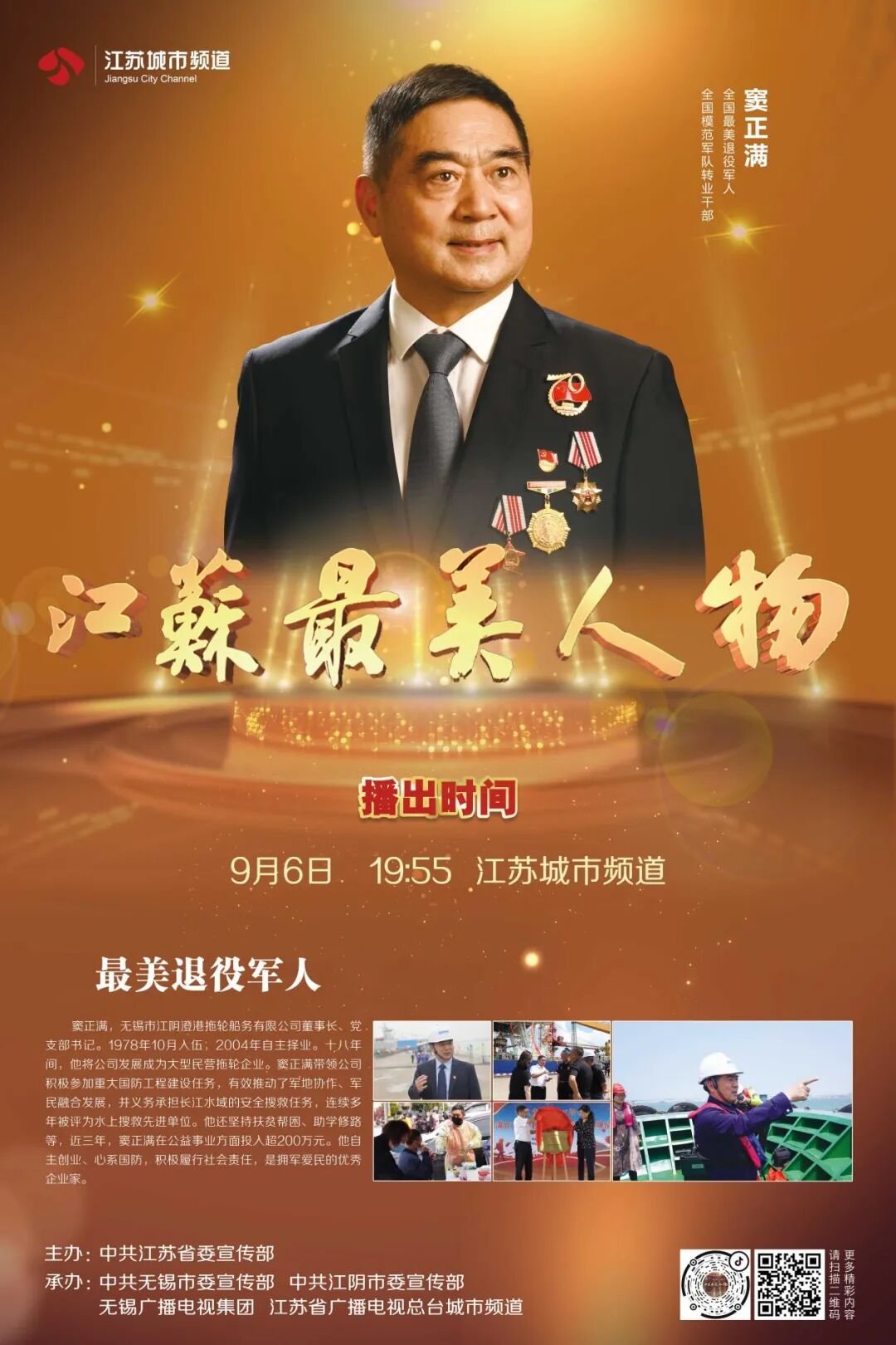 近日,省委宣传部作出决定,授予无锡市江阴澄港拖轮船务有限公司董事长窦正满同志江苏“最美退役军人”荣誉称号。8月31日下午,江苏“最美退役军人”发布活动在市融媒体中心举行,并进行现场录制。