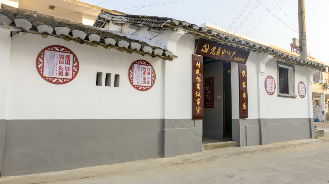 “党员中心户”外设有的核心价值观文化墙,与村东外立墙大幅的墙体彩绘遥相呼应,大力度、高强度地营造出了“抬眼可见、举足即观”的社会主义核心价值观宣传阵地,村内设有新时代文明实践志愿服务队伍接地气的理论宣讲点单派单式的志愿服务……让社会主义核心价值观在大水墩落地生根。