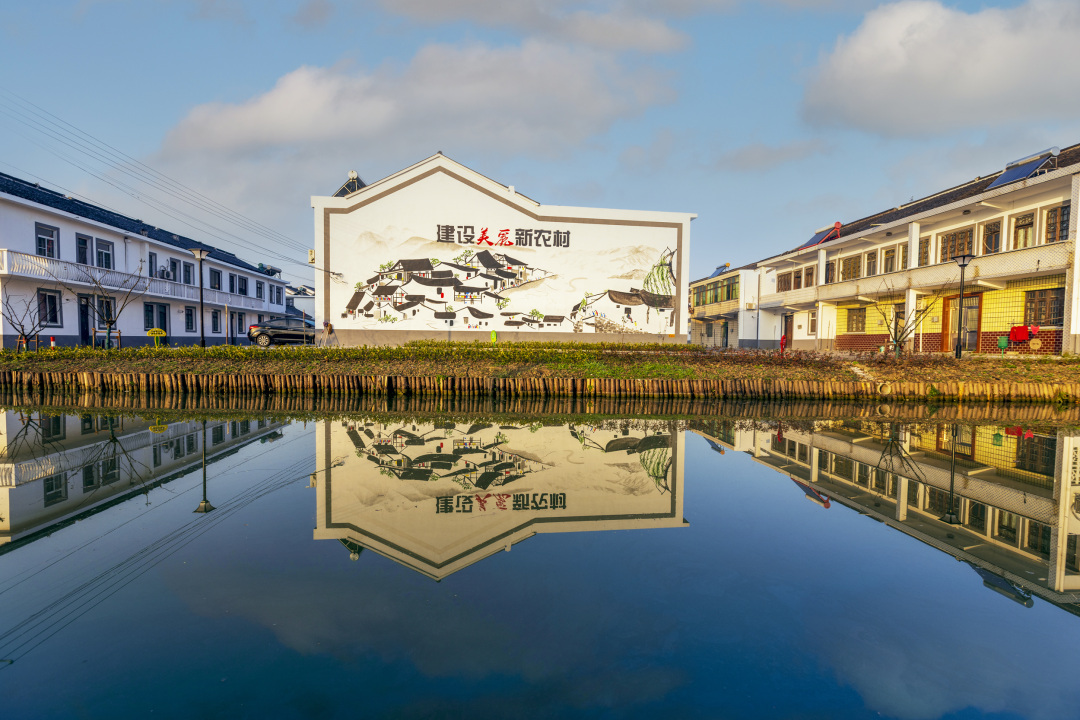 一排排村舍,白墙瓦黛,整齐划一