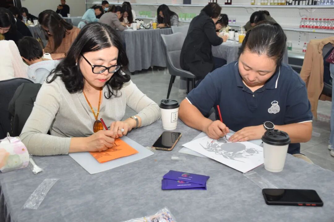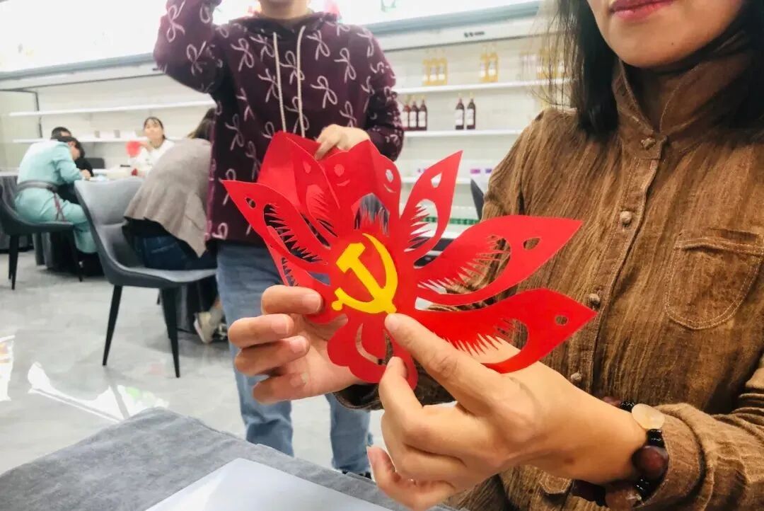 为了多形式学习党的二十大精神,现场还进行了主题鲜明的非遗体验课程——金坛刻纸,大家都表现出了极大的热情,在了解完刻刀的使用方法以及刻纸的注意事项后,纷纷拿起了手边的工具,围绕党的二十大主题,用一把刻刀、一张红纸,通过动手实践,创作出一幅幅栩栩如生的作品,表达对党和国家未来发展的期盼和愿景。