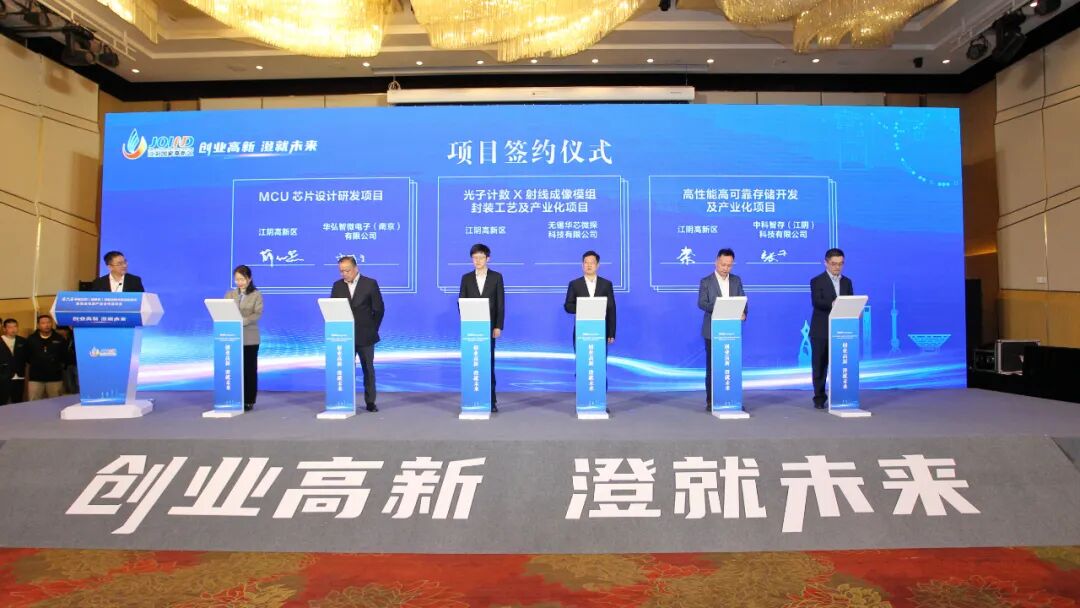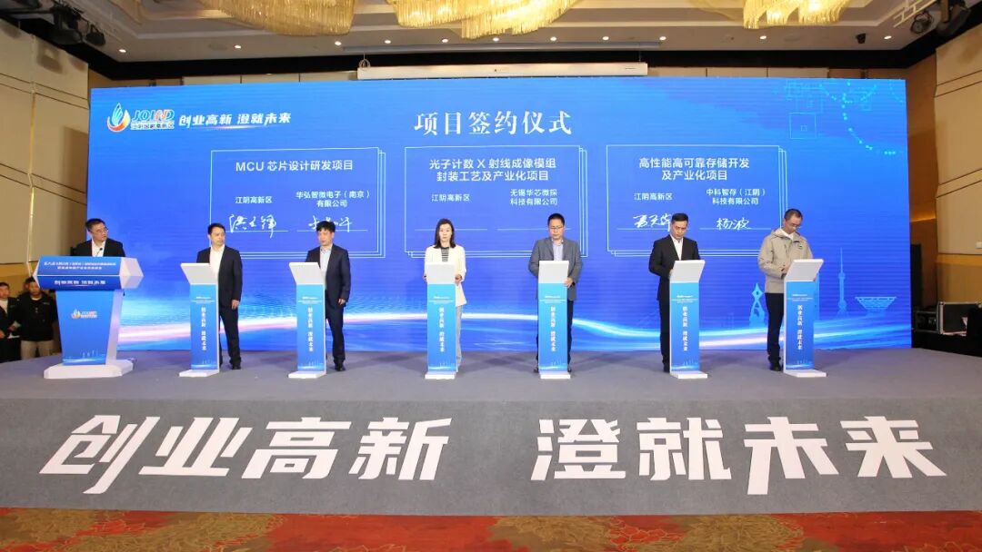 在当天上午第六届中国江阴(高新区)创新创业大赛集成电路产业专场赛中脱颖而出的5个项目获颁晋级总决赛项目证书,晋级项目代表进行了现场路演;OLED屏幕控制芯片研发项目、毫米波雷达芯片及系统应用项目、捷芯集成电路芯片测试项目、光子计数X射线成像模组封装工艺及产业化项目、高性能高可靠性存储开发及产业化项目、MCU芯片设计研发项目等6个集成电路产业优质项目进行了现场签约,将为高新区集成电路产业新一轮发展夯实产业基石、蓄积更大潜能;总规模1亿元人民币的江阴集成电路创业投资基金发布;高新区作集成电路产业推介。