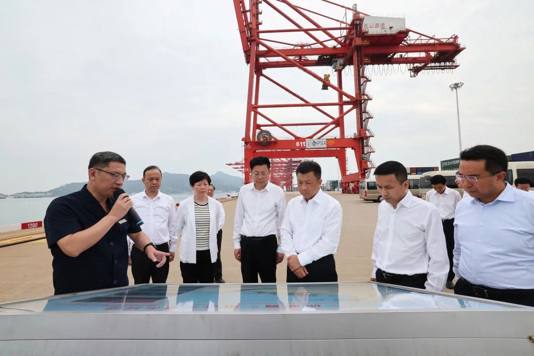 开港90载的连云港港,是我国11个国际枢纽海港之一。代表团考察港口集装箱码头,仔细察看连云港陆海联运通道示意图、“一体两翼”组合大港布局图等,重点了解与无锡联运情况。