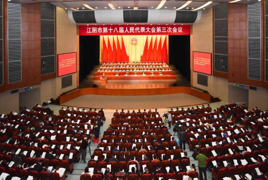 上午9:30,计军宣布:江阴市第十八届人民代表大会第三次会议开幕。全体起立,奏唱中华人民共和国国歌。