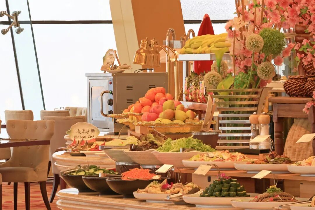 在华西龙希大酒店的70层自助旋转餐厅,眺望华西全景,尽享世界美食。