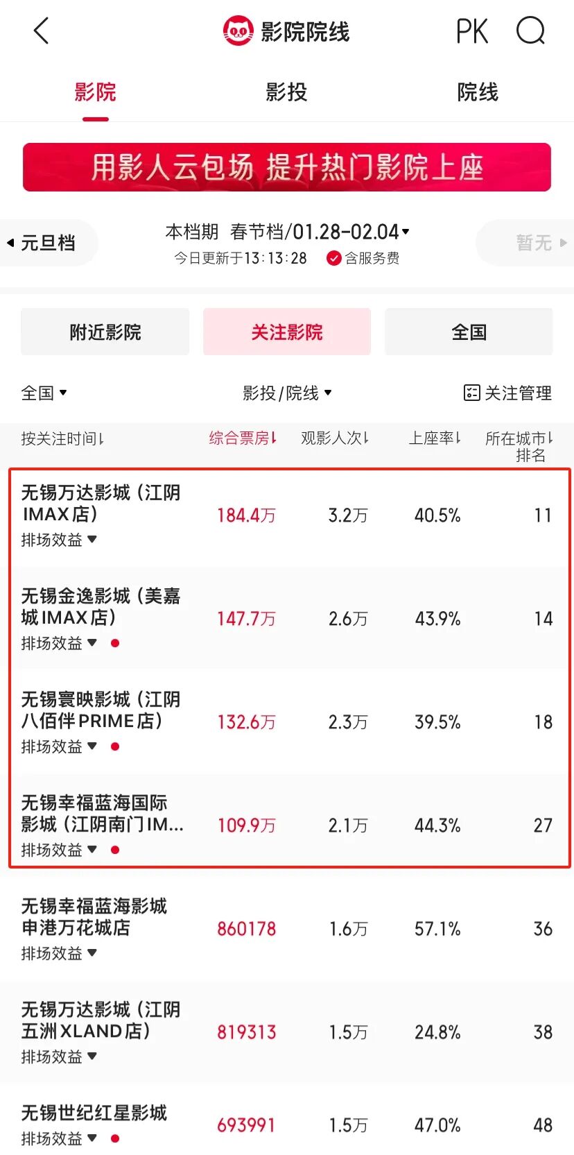 江阴是全国首个乡镇影院全覆盖的县级市,大伙家门口看大片更方便啦!春节期间我市有四家影城综合票房超百万。