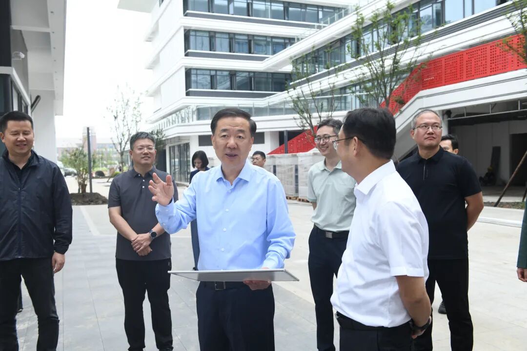 在南理工创新港三期,许峰详细了解项目建设进展,听取招商引资、运营管理等方面情况介绍。该项目总投资约11.2亿元,预计11月完成竣工验收,未来将围绕数据标记、数据流通、数据安全等细分领域招引一批数字经济类项目,打造具有影响力的数据产业科创高地。