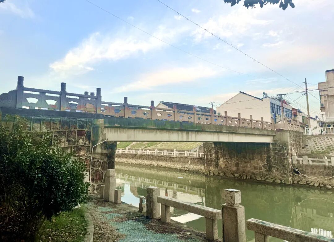 通济桥,南宋、明朝时为一座木桥,即定名为通济桥,到了明代后期拆除木桥重建为单孔青石拱桥,江阴至常州的驿道由东向西从镇上通过,随之商铺、民宅建在驿道南北两旁,逐渐形成街道。新中国成立后,由于河道航运的需要,拆掉石拱桥改建水泥拱桥,并打上时代的烙印“人民桥”。到了2003年时,又拆除水泥拱桥,新建成当前我们看到的平板桥,并且恢复了古桥名“通济桥”。