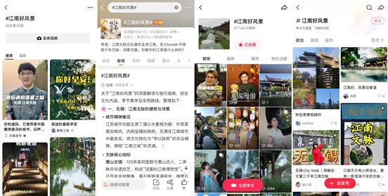 活动在微博、抖音、视频号、小红书等主流社交平台,以及携程、马蜂窝等旅游平台同步开设#江南好风景#核心话题,截至目前累计阅读量超5000万,登上微博热搜。衍生话题#江南的终极答案藏在被低估的城市#跻身全国热搜实时上升榜,#读城无锡##无锡入选世界音乐之都##江苏赏秋路线推荐##无锡姓无但啥都有#等联动话题也引发广泛关注和讨论,多个话题登上同城热搜首位。
