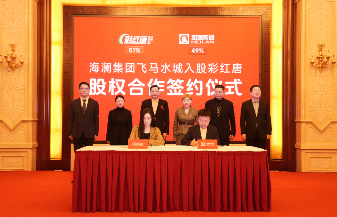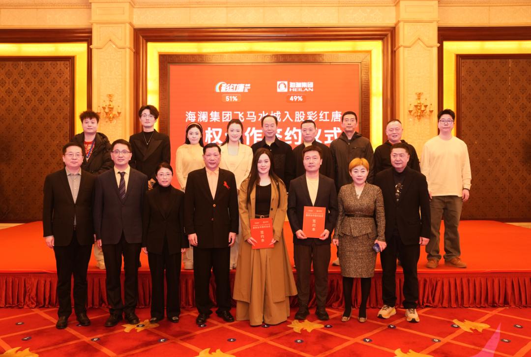 今天,海澜集团飞马水城与彩红唐传媒达成战略合作签约,飞马水城入股彩红唐传媒49%股份。