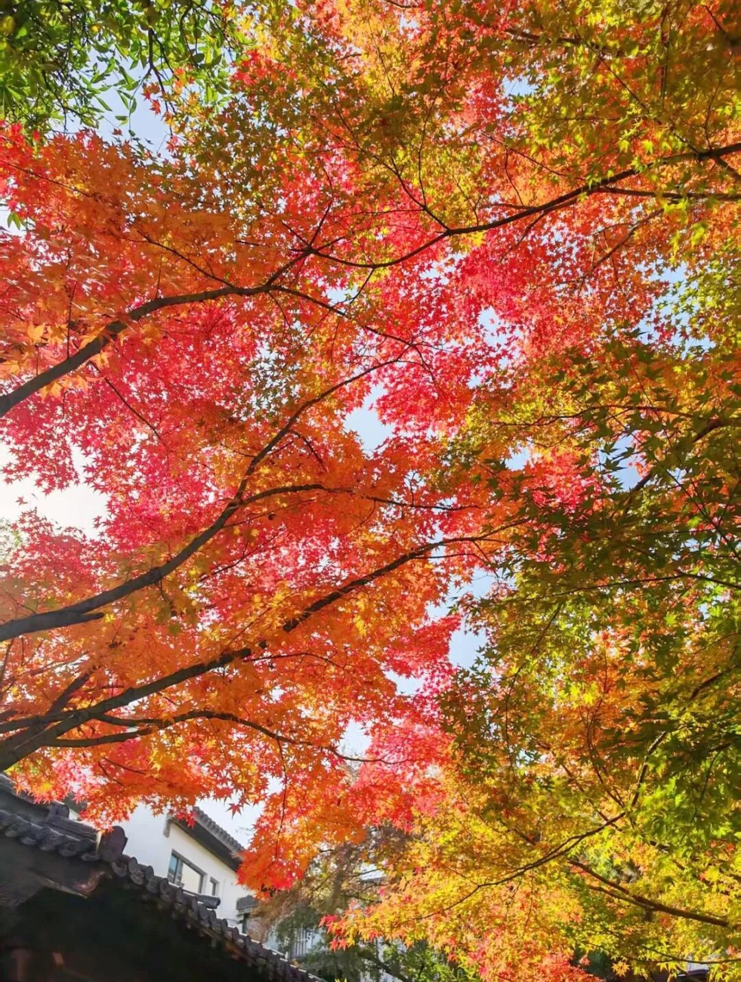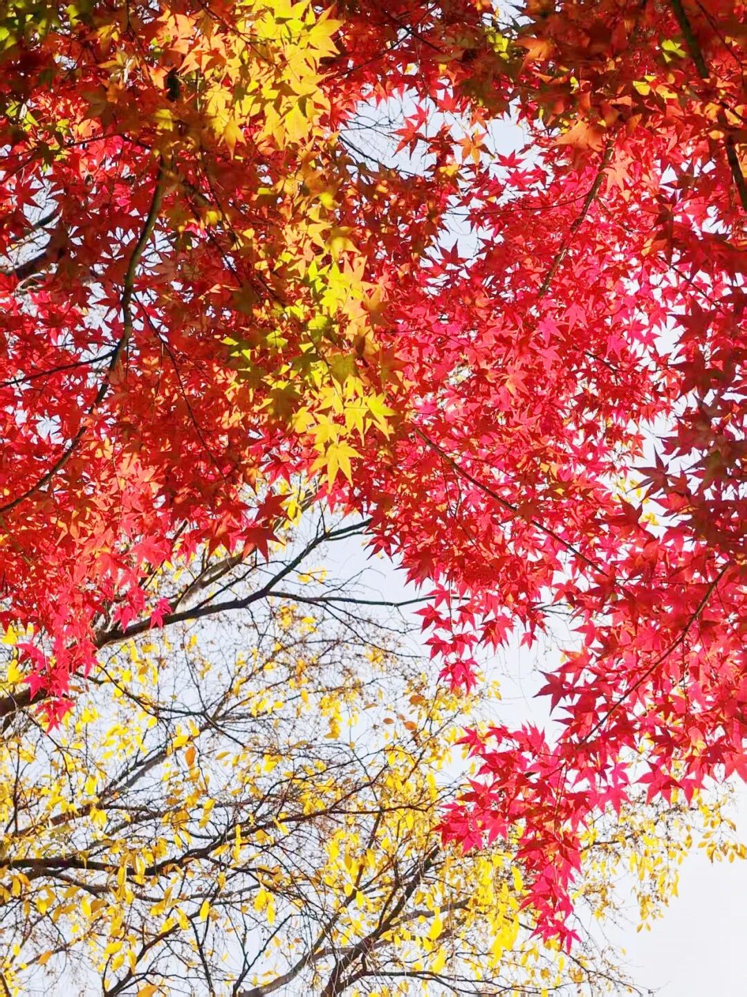 红枫和银杏组成的