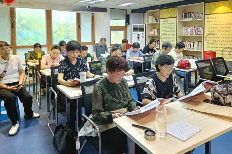 美好社区活动室内欢声笑语,其乐融融。朗诵课课堂上,老师一边做示范一边带着学员练习,发现有些学员读得不正确,就耐心纠正。虽然学员都是年过半百的老人,但他们学习认真专注,丝毫不逊色于年轻人。