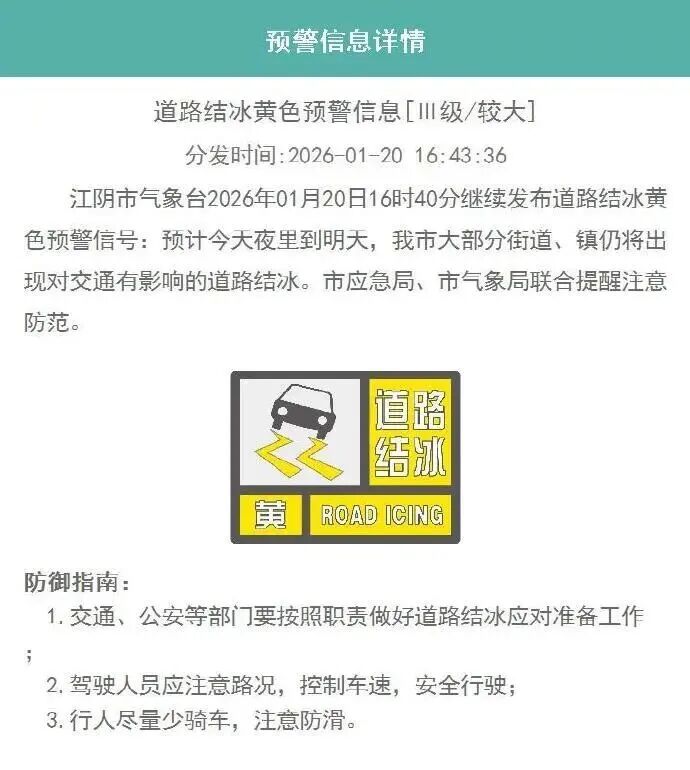 道路结冰黄色预警信号