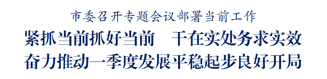 1月25日下午,市两会闭幕后,市委随即召开专题会议,第一时间就市两会确定的目标任务,进行细化分解、研究落实,动员全市上下紧抓当前、抓好当前,干在实处、务求实效,奋力推动一季度发展平稳起步、良好开局,以更多经济大市挑大梁的实绩实效为全国全省大局多作贡献。市委书记杜小刚主持会议并讲话,市长蒋锋作具体布置。各相关市领导作表态发言。