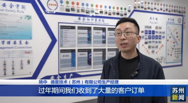 在德星技术(苏州)有限公司,虽然临近春节,但企业依旧满负荷运转。据介绍,今年春节期间,工厂有超过半数的员工坚守在生产一线。