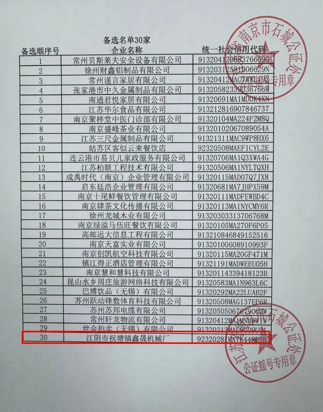 江阴一家企业列入备选名单