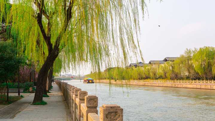 扬州大运河沿岸的杨柳@视觉中国