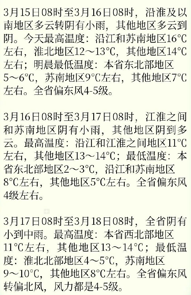 15日全省有一次弱冷空气影响