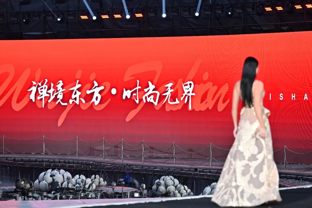大秀开启后的拈花湾微笑广场,将呈现出以天地为场馆、以科技为笔触、以中式美学为魂的艺术空间。天上,1400架无人机编队与烟花在高潮时段升起,变换出品牌Logo与东方意象,成为江南夜空中的动态标识;地上,56米弧形红台化作时尚与文化的纽带,18米塔玛拉动态雕塑成为精神图腾,全息数字影像屏打造出360°沉浸式秀场;天地之中,超模的步履与舞台曲线、水面倒影相融,每一次出场都是一幅移动的东方时尚画卷,让观众在移步换景中,感受“秀场即场景,时尚即生活”的全新体验。