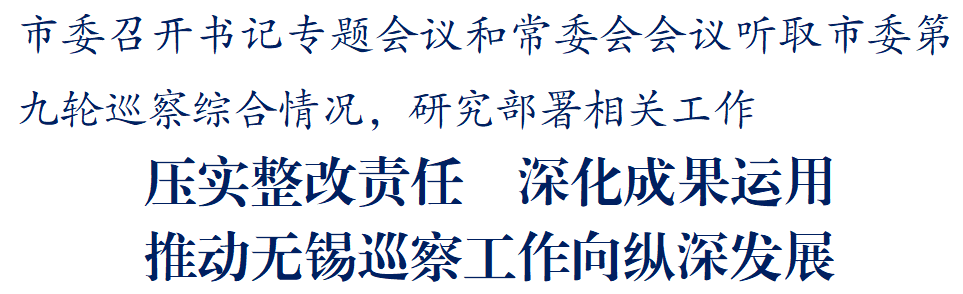 会议强调,今年是“十五五”开局之年,也是十四届市委巡察的收官之年。要深入学习贯彻党中央关于巡视巡察工作的决策部署,全面落实全省巡视巡察工作会议和省纪委监委工作要求,周密实施下一轮巡察,确保圆满完成本届市委巡察全覆盖任务。要科学谋划,认真做好未来五年巡察工作规划的研究起草工作。要以省委巡视对巡察工作专项检查反馈问题整改为契机,找准找实我市巡察工作高质量发展的着力点,不断加强巡察整改和成果运用,为推进中国式现代化无锡新实践提供坚强保障。