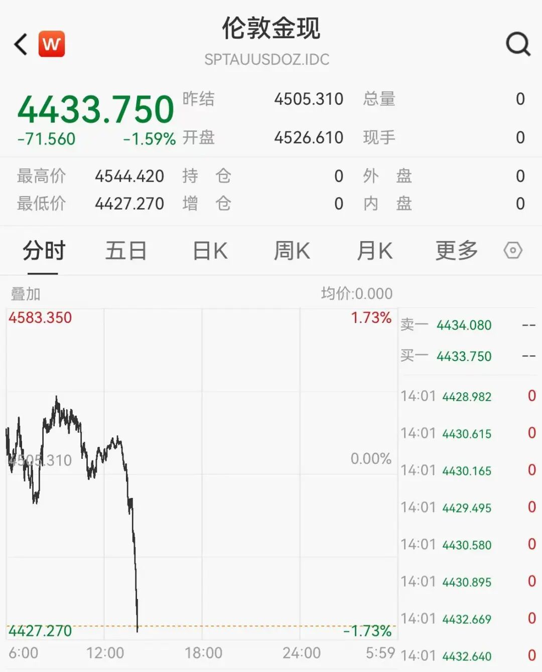 3月26日下午,金银价格快速跳水。截至14点,现货黄金报4433美元/盎司,盘中一度跌破4430美元,日内跌超1.5%;现货白银价格跌破70美元关口,现报69.54美元/盎司,日内跌超2%。