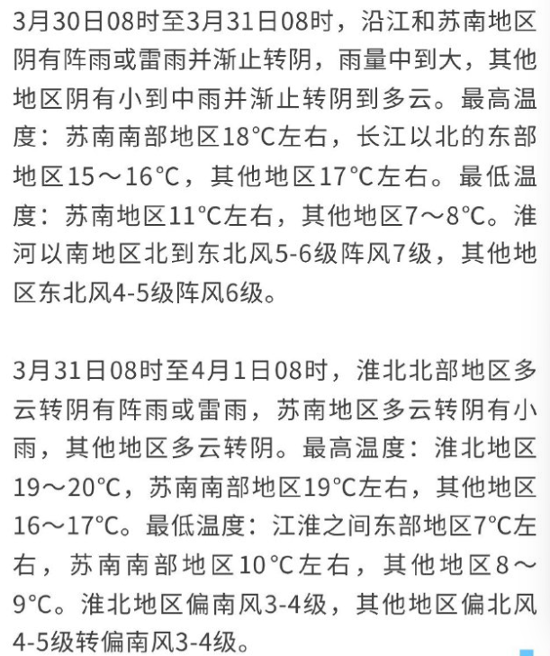 30日江苏有一次降水过程