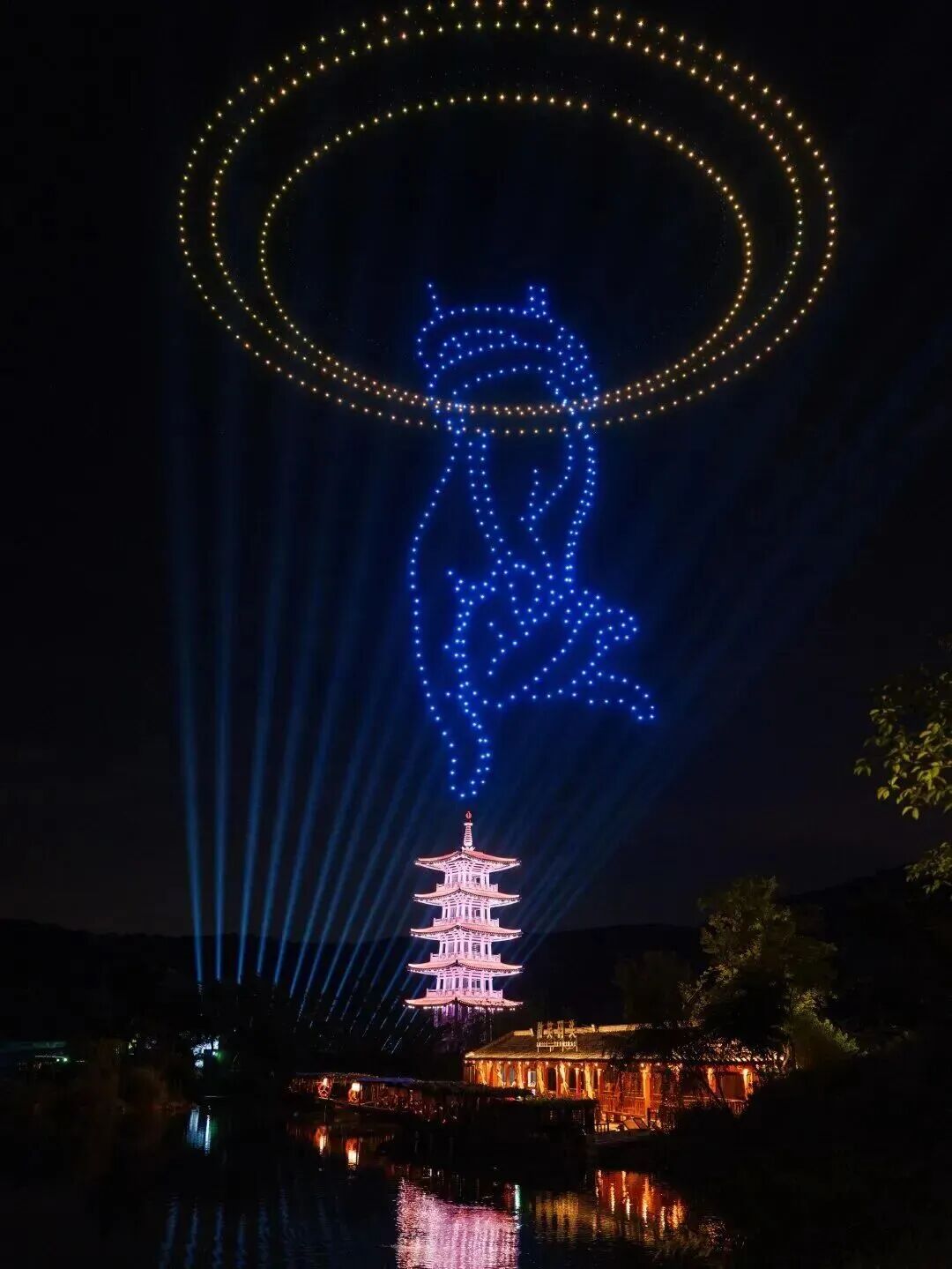 📝活动内容:在原有微笑广场《拈花一笑》演艺的基础上,延长扩大定制无人机+烟花秀规模,打造五一假期定制款烟花秀,展现大唐盛世风华。