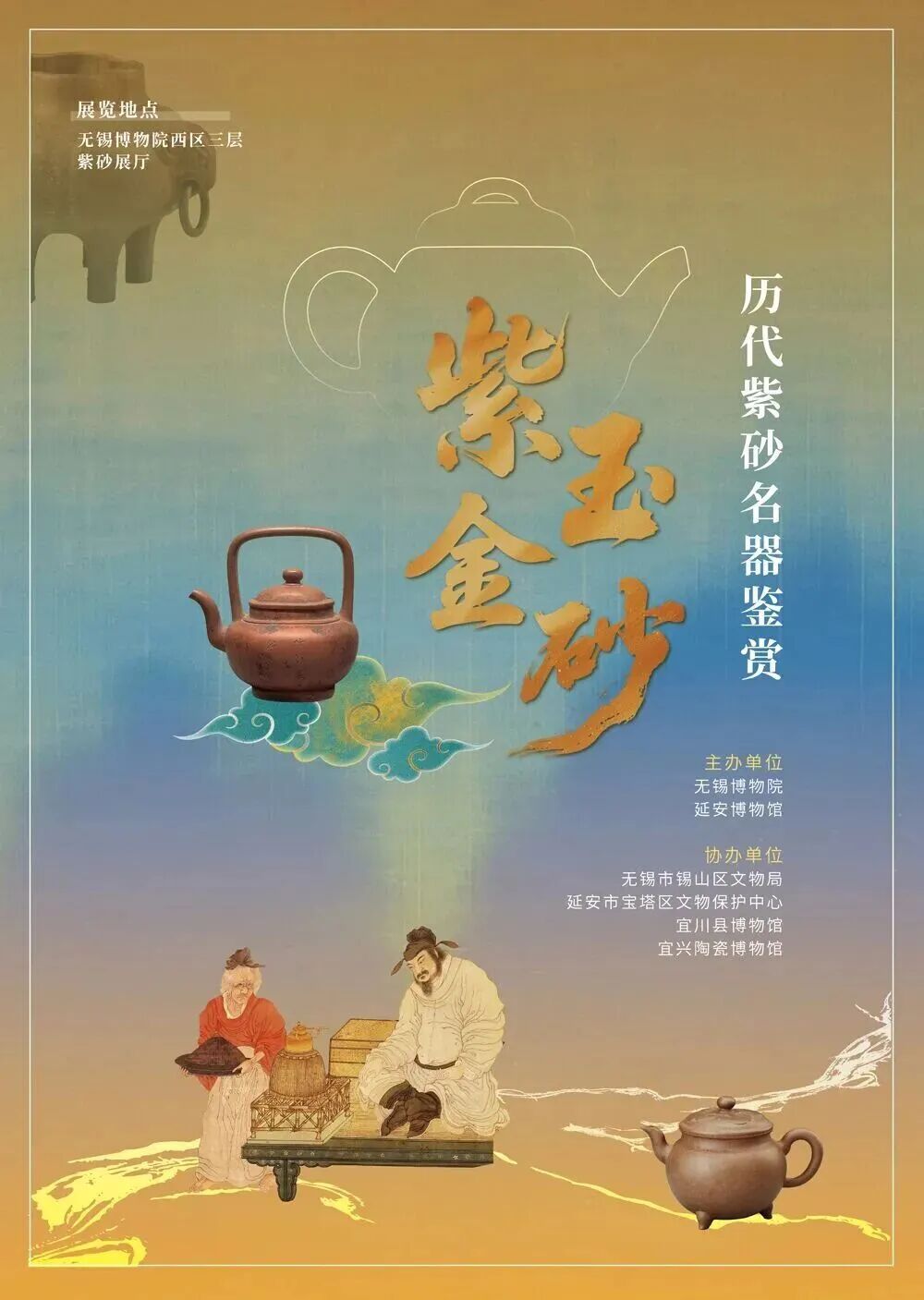 📝活动内容:本次展览以“紫玉金砂”为主题,系统展示历代紫砂名器。从新石器时代陶罐、明代早期紫砂壶,到清代及近现代名家精品,如惠逸公、邵大亨、顾景舟、蒋蓉等代表作,涵盖壶、瓶、笔筒、雕塑及仿生果品等品类。