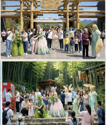 📝活动内容:森系花艺打卡美陈、五宝精灵NPC互动、竹艺集市