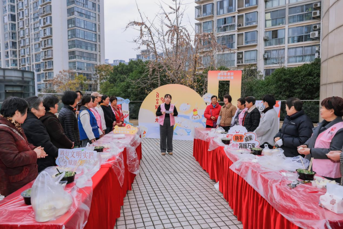 武进区湖塘镇“阳湖有好市”文明集市周年活动在南都社区举行,居民共同参与民俗体验,在制作传统美食的过程中感受社区温情。