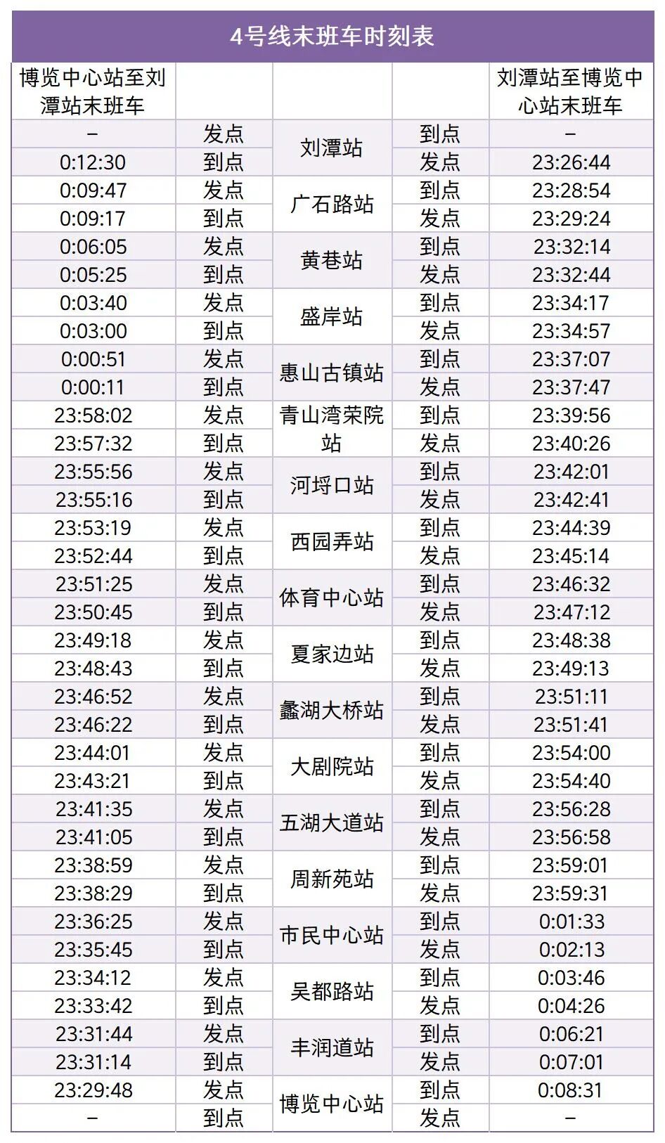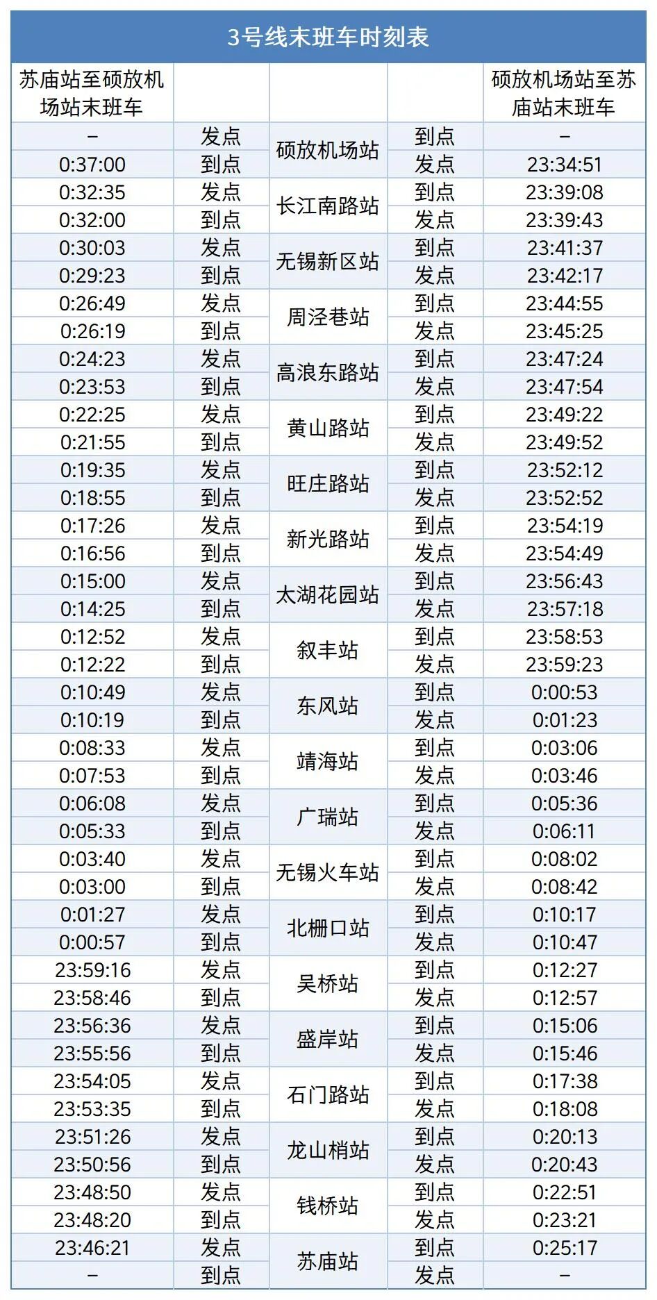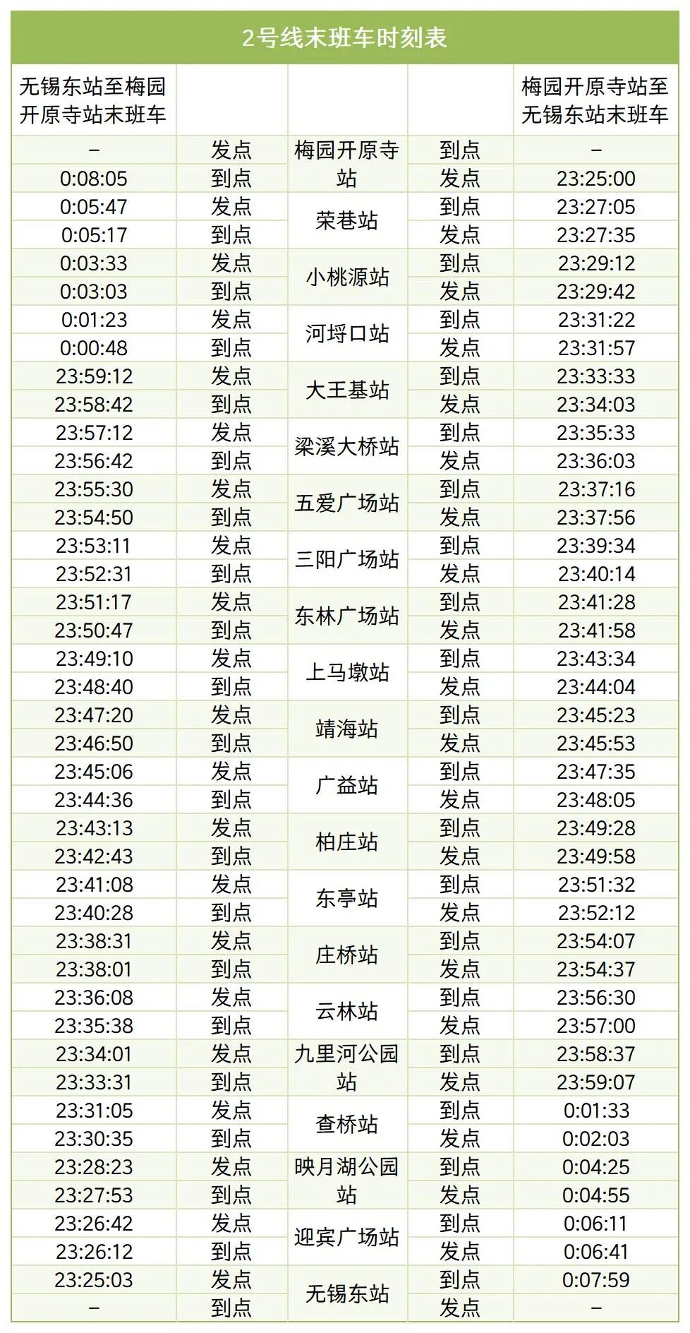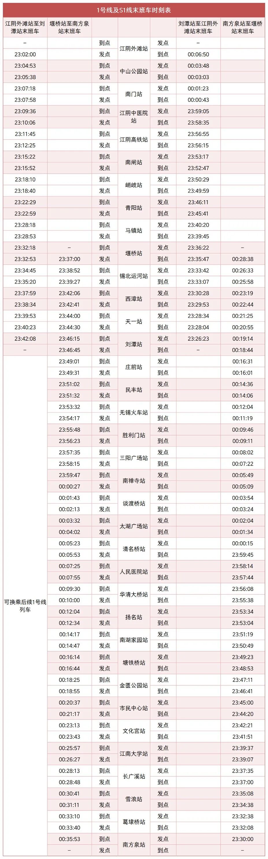 各站首末班车时间详见下表