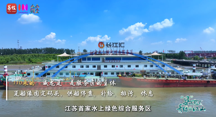 2021年6月11日,如皋水上绿色综合服务区全面建成。这个全长近360米的服务区,像一条绿色长龙横卧江面,成了长江上的“生态驿站”。