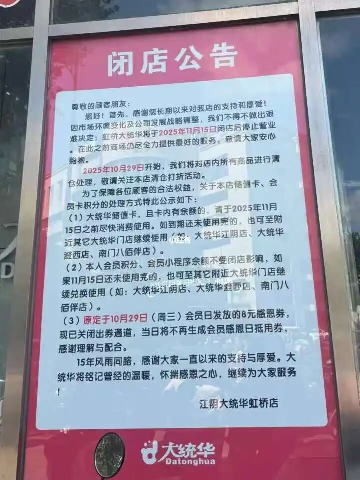 要是你家在虹桥大统华附近,有需要的话可以去逛逛,说不定能淘到划算的刚需品;另外提醒下,手里有大统华购物卡的不用慌,江阴其他门店都能正常使用。