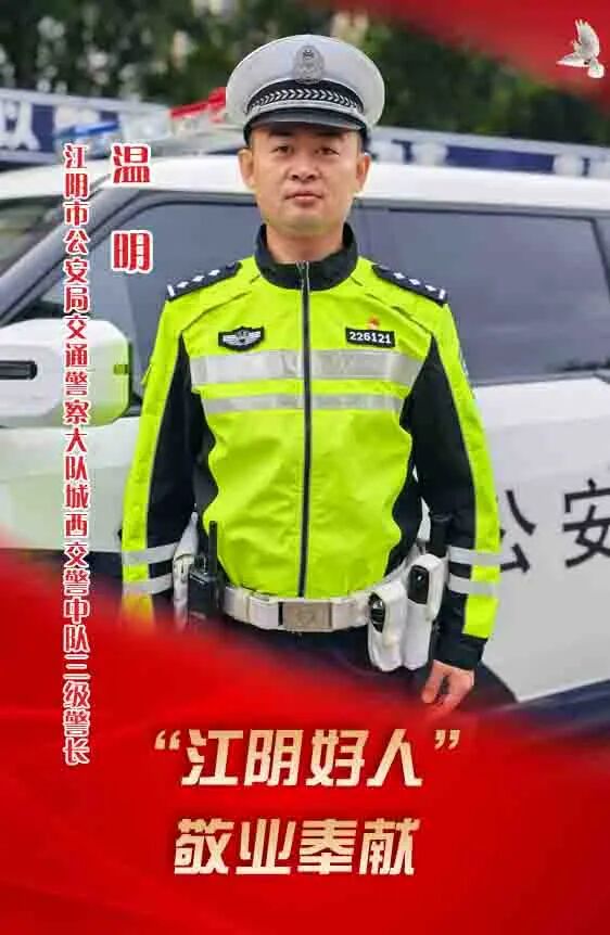 温明,男,1986年生,江阴市公安局交通警察大队城西中队三级警长。温明曾在潜艇部队服役12年,危险严苛的工作环境塑造了他严谨细致、敬业奉献的精神品质。虽然脱下军装,换上警服,他仍用不变的铁血担当守护城市的万家灯火。自2020年转业至江阴市公安局以来,他日夜奋战在护学岗、交通安保、交通事故接处警、纠正交通违法行为和帮助群众解决难题的“一线战场”。2021年疫情期间,他主动请缨到卡口一线,守住了江阴的“南大门”;“靖安”行动中,他化身执法“利剑”,促稳定、保畅通;夏季治安打击行动中,他给酒醉驾亮“红灯”;“减量控大”中,他用扎实有效的工作助力平安江阴建设……他始终坚守在交管一线,不断总结新经验、探索新战法,对照目标任务高标推进。他平均每天纠正、查处交通违法行为60余起,处理简易交通事故10余起,用平凡岗位上的点点滴滴,诠释一名交通警察的初心与担当。温明荣立三等功1次、获评优秀公务员2次、获嘉奖2次。
