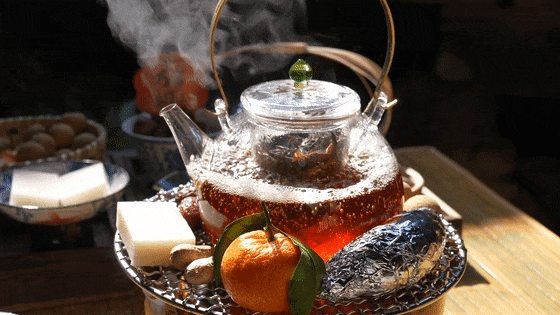 三五好友围炉而坐,炭火噼啪作响,茶香混着烤物的焦甜漫开,治愈又暖心。