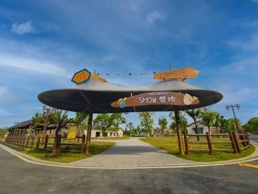 踏入园区的瞬间,治愈感便扑面而来:彩虹小道顺着林间蜿蜒延伸,脚下的色彩斑斓,仿佛一不小心闯进了童话世界;两旁的香樟树郁郁葱葱,阳光穿透枝叶,在地面投下斑驳晃动的光影,无需刻意构图,随手一拍都是氛围感拉满的大片;天幕、帐篷与小木屋错落分布在草木之间,不用自己搭帐篷就能拥有露营体验。