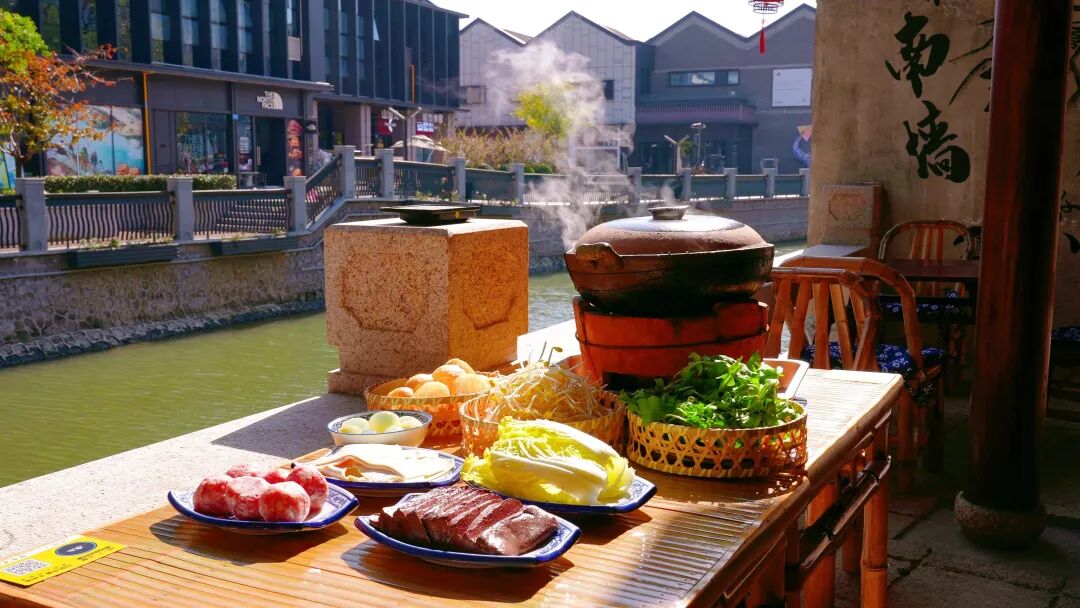 若想享受更灵动的景致,择一处河岸边的雅座再好不过。初冬的阳光洒在潺潺河面上,波光粼粼间,炉上的茶壶煮着茶香,水汽裹挟着茶韵袅袅升腾,三五好友围坐闲谈,欢声笑语漫过河岸,与流水声、煮茶声交织成趣,满是岁月静好的惬意。