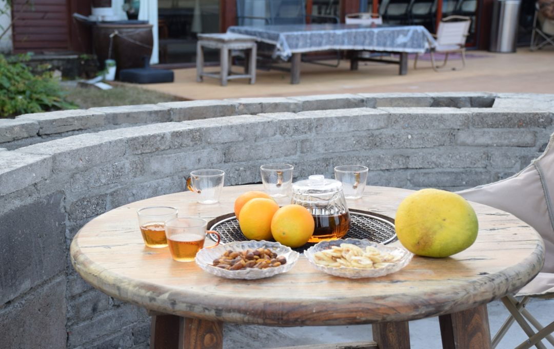 在璜土胡子小镇煦樾农庄的中式庭院里,一座直径3米、可容纳25人围坐的巨型围炉是绝对的主角,与寻常围炉不同,它是众人围坐一起的烟火气。炭火正暖,红茶在壶中咕嘟咕嘟沸腾,醇厚的茶香香气四溢。