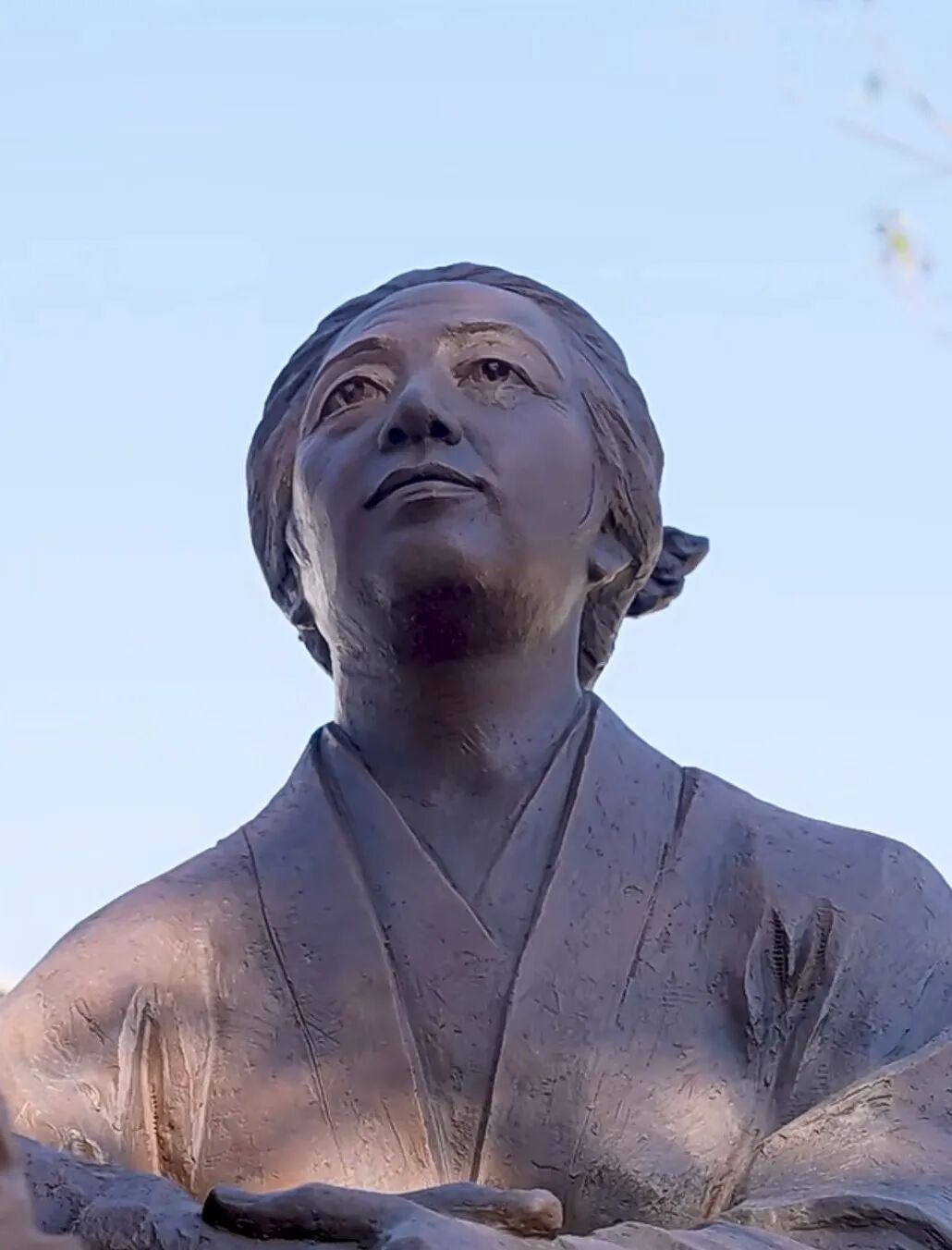 我将雕像的形象选在徐霞客21岁的青年时期。这座雕塑,徐霞客着一身短装,手持一把江南特有的油纸伞,心向山河,胸怀世界;徐母则注视着儿子,将期待和鼓励倾注在徐霞客身上,再现母亲在春天送儿子远行时的场景,赋予作品一种“风雨兼程”的内涵。